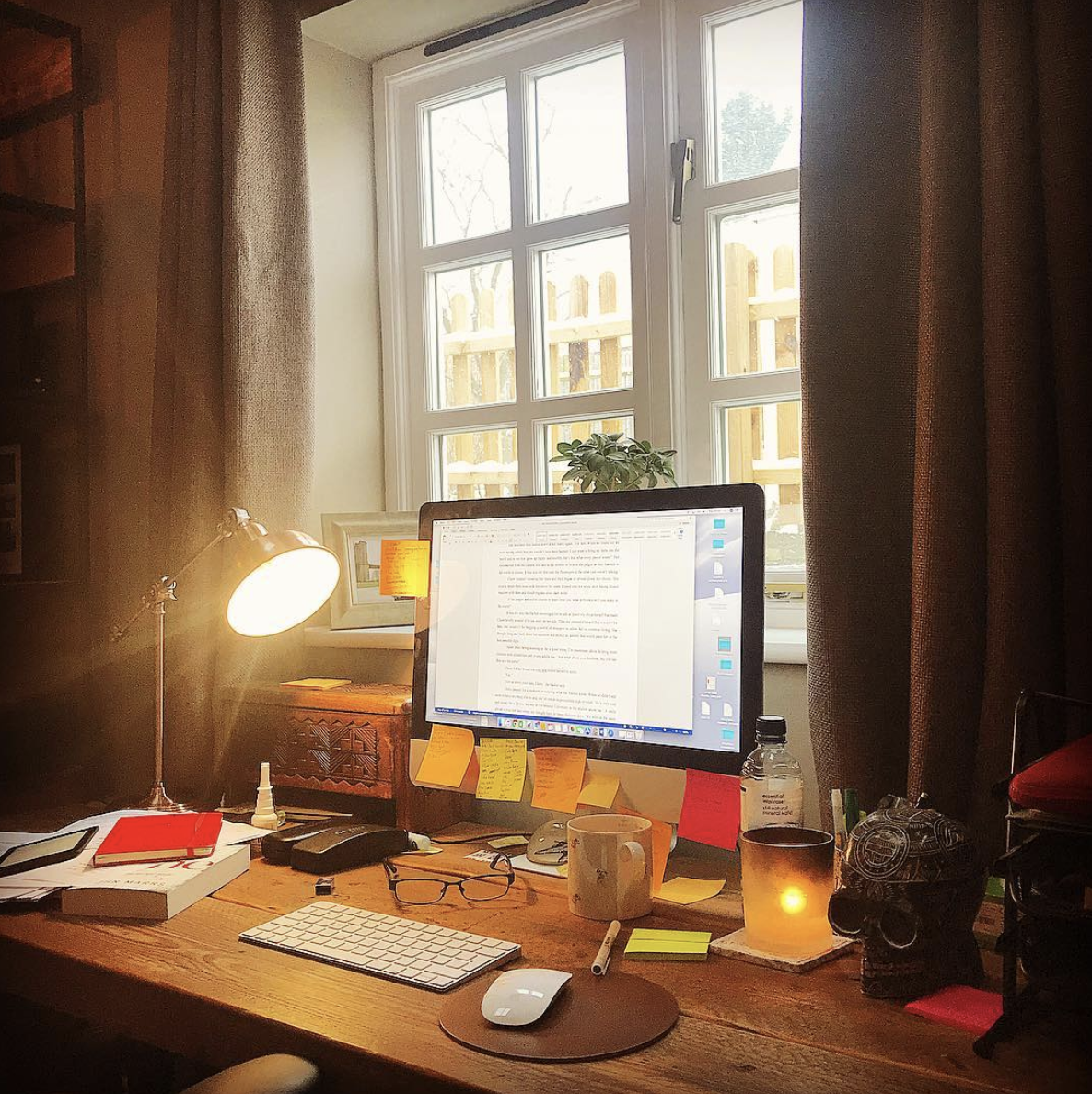 John’s super-tidy desk… and of course candle…